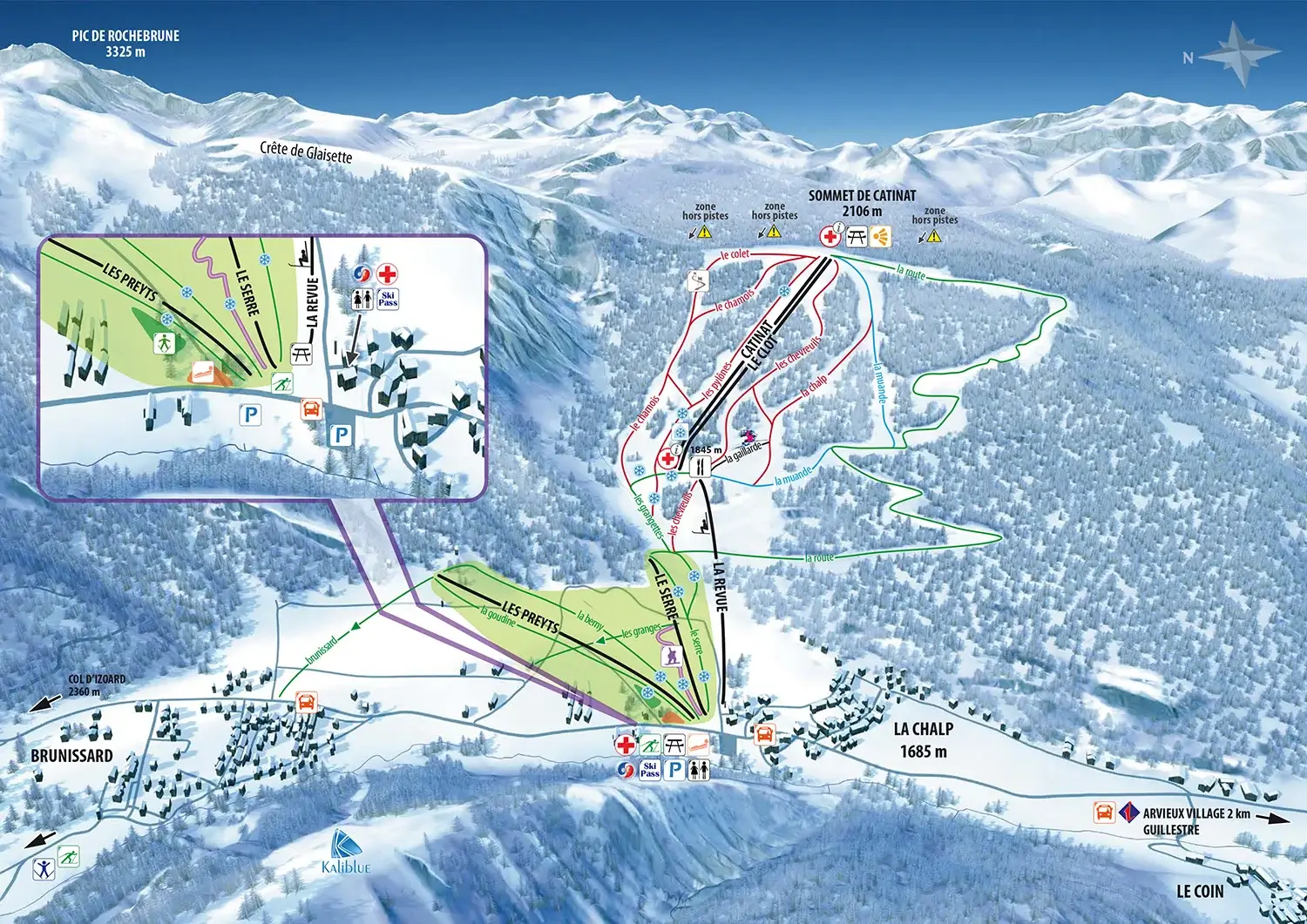 – Divers commerces et services (alimentation, distributeur automatique, ski shop, bibliothèque multimédia…).