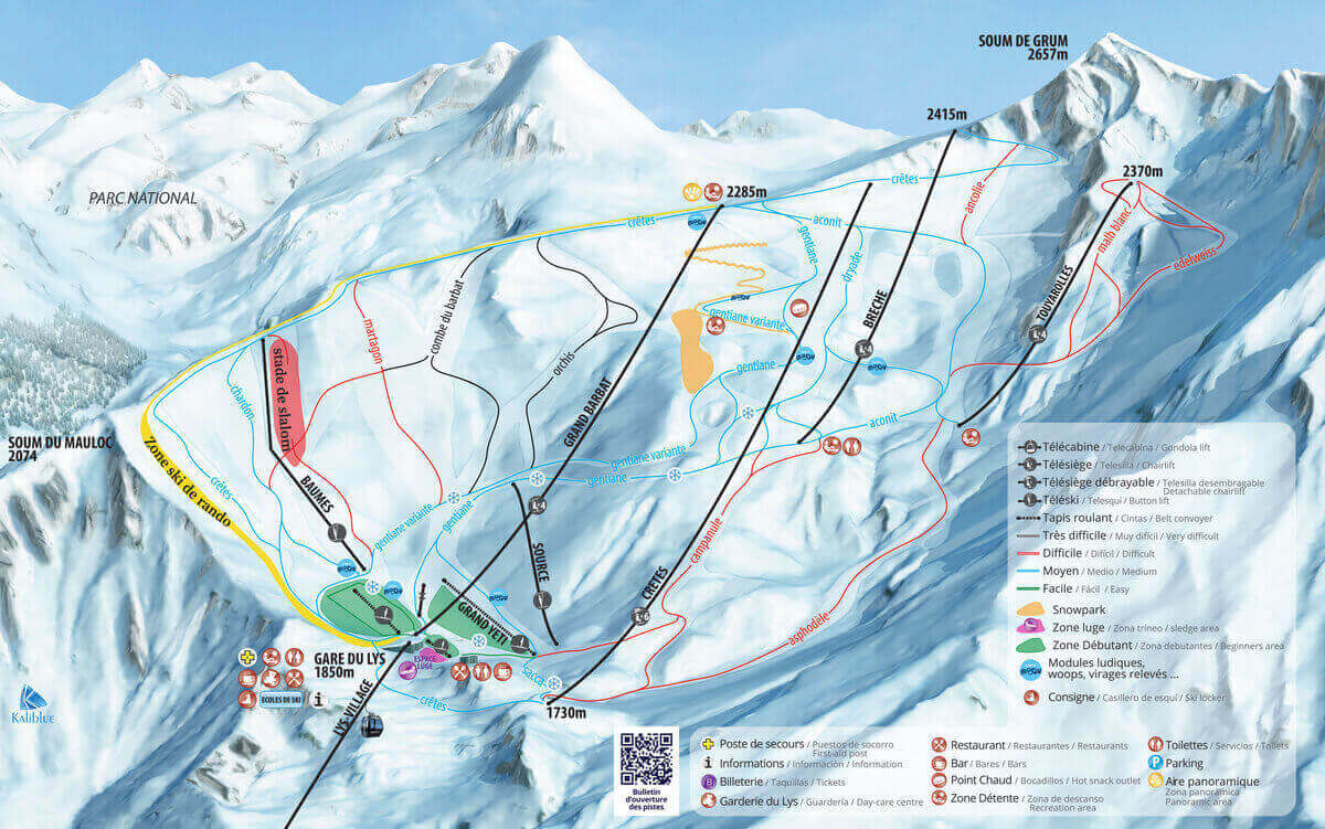 Accessible par la télécabine du Lys au départ de Cauterets, ce domaine jouit d’une exposition favorable et d’un enneigement optimal.