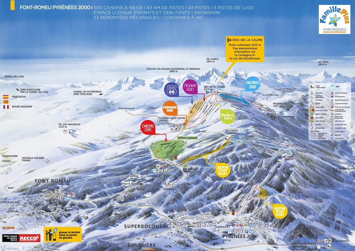 La station culmine à 1800m, entre la France et l’Espagne, sur le vaste plateau de la Cerdagne. Elle comporte 4 secteurs.