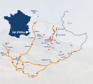 De Paris: A6 jusqu’à Lyon puis A7 jusqu’à Aix-en-Provence sortie Aix Ouest, A51 sortie Peyruis/Les Mées, Digne-les-Bains ( N96-N85) jusqu’à Barrême (N202), Saint-André-les-Alpes (D955) puis D908 jusqu’ à Val d’Allos. Via Avignon : (872 km) sortie autoroute à Cavaillon, via Apt (N100), Forcalquier, Digne (N85) jusqu’à Barrême (N202), St André les Alpes (D955) et (D908) jusqu’à Colmars. Via Grenoble: (832 km), Sisteron (N75), Digne (N85) jusqu’à Barrême (N202), St André les Alpes (D955 et D908) jusqu’à Colmars. De Marseille : Autoroute jusqu’à Peyruis, Digne (N96 et N85), jusqu’à Barrême (N202), St André les Alpes (D955 et D908) jusqu’à Colmars.