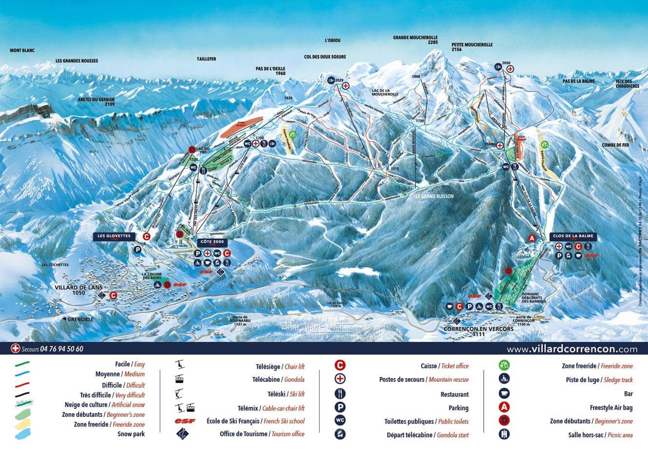 C’est de là que skieurs et snowboardeurs empruntent les télécabines de Côte 2000 et du Pré des Preys pour rejoindre les pistes de ski de l’Espace Villard-Corrençon (domaine commun entre les deux stations voisines que sont Villard de Lans et Corrençon en Vercors). Avec 125 kilomètres de pistes de ski alpin tracés entre les forêts de sapins (côté Villard de Lans) et de pins (côté Corrençon) sur près de 1000 mètres de dénivelé, il s’agit ni plus ni moins que du plus vaste domaine skiable du Vercors (le 3ème à l’échelle de l’ensemble du département de l’Isère).